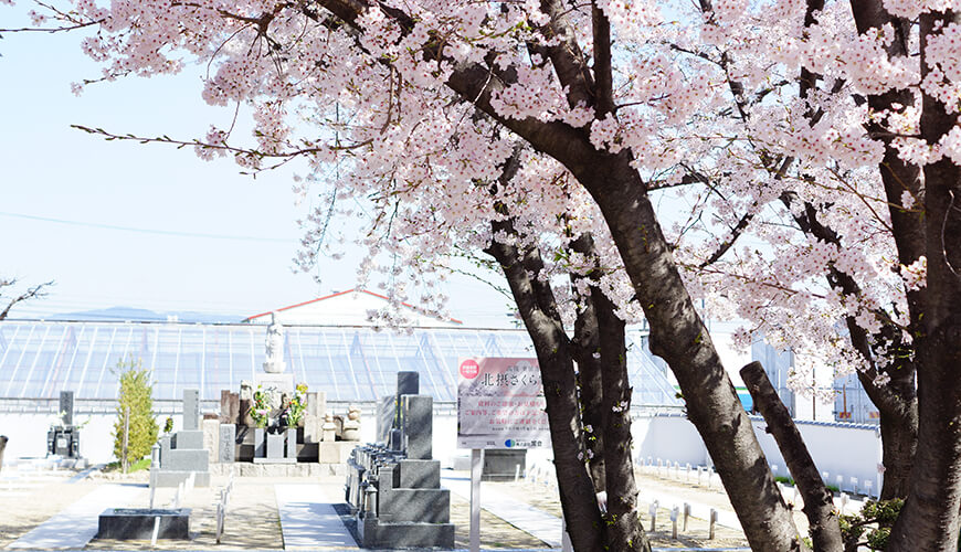 桜に囲まれた清楚な墓地で、仏様は安らかに眠り、お参りされる方も、心安らかにお参りできます。